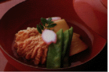 天然物の真鯛の真子を薄味で煮付けました炊き合わせの一品に、また、あたためても美味しくいただけます 季節柄、タケノコの煮物盛り合わせてお召し上がり下さい
